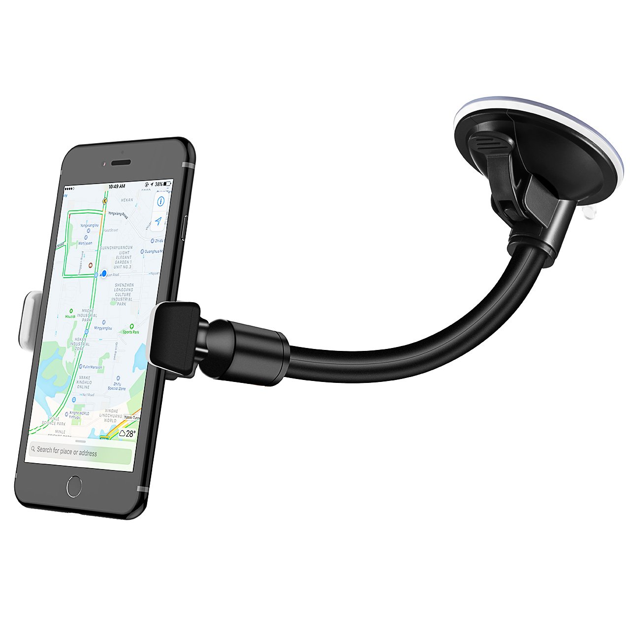✔【Aspirazione Estremamente Forte】 È facile da aderire al tuo parabrezza o ad altre superfici lisce tramite una forte tazza di aspirazione, che è migliorata con un blocco di clip in plastica. Inoltre, ha una forte molle per evitare di cadere il tuo cellulare. I materiali del clip in gomma protegge il suo telefono da qualsiasi graffio. ✔【Regolabile Completamente】 Questo supporto per auto è completamente regolabile con una rotazione completa di 360°, è facile da posizionare il cellulare in esso. Fornisce diversi angoli di visualizzazione tra 0-90° in modo che il telefono può essere regolato all'angolo preferito. ✔【Design di One Push】 Funzionamento semplice One-push, questo supporto può rilasciare e bloccare i dispositivi con una semplice spinta e si è in grado di mettere il cellulare sul supporto o rimuoverlo con una mano. ✔【Eccellente Stabilità】 Lo spessore del collo d'oca è più spesso di quello comune in modo che possa fornire un'eccellente stabilità, si tiene bene anche quando si guida sulla strada accidentata, così potrai facilmente godere della chiamata e della navigazione durante il processo di guida. ✔【Compatabilità Universale】 Con una apertura max 80mm, questo supporto telefono per auto portatile si adatta con maggior parte dei cellulari, anche i cellulari con la cassa del cellulare, come GPS Dispositivo, iPhone 4/5 / 5C / 5S / 6/6 Plus, Samsung Galaxy S3 / S4 / S5, Samsung Galaxy Note 1/2 / 3 HUAWEI Xiaomi LG e così via. › Visualizza altri dettagli prodotto